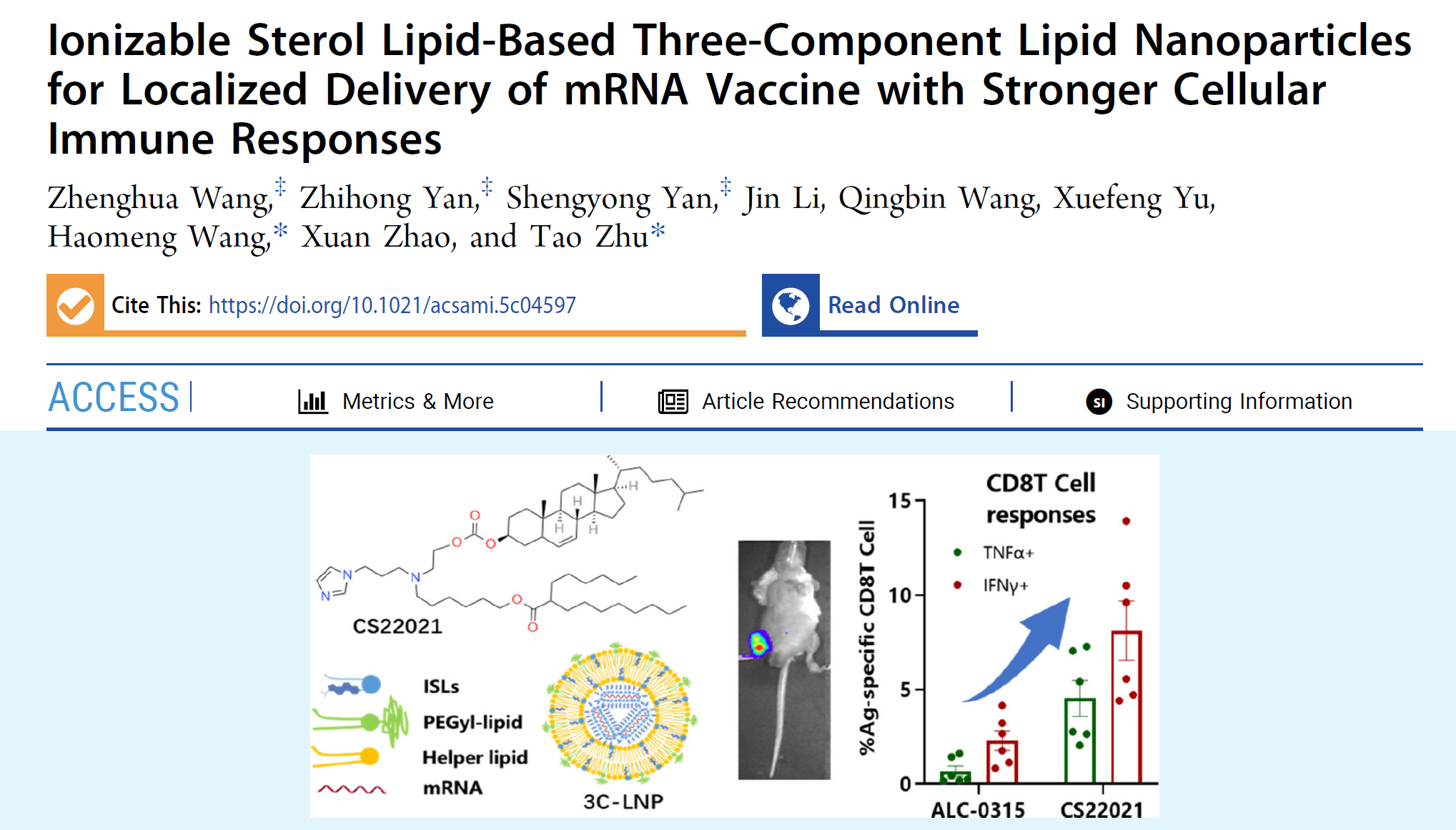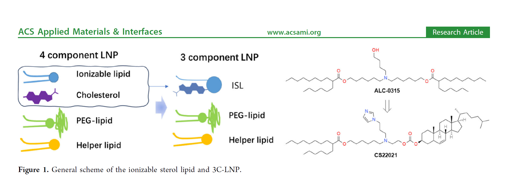近日,和记官网生物子公司和记官网(上海)生物研发有限公司联合北京键凯科技股份有限公司研发团队成功开发了一种基于新型可离子化甾醇脂质(ISL)的三组分脂质纳米颗粒(ISL-3C-LNP)递送系统,并通过理性设计、系统性筛选获得了一系列具有优良性能的ISL化合物,研究发表在国际权威期刊ACS Applied Materials & Interfaces上。