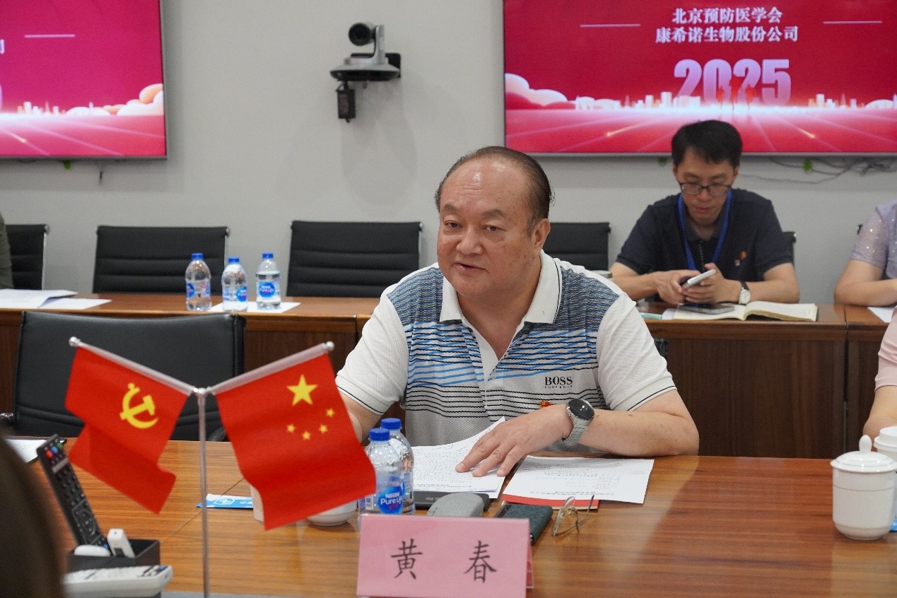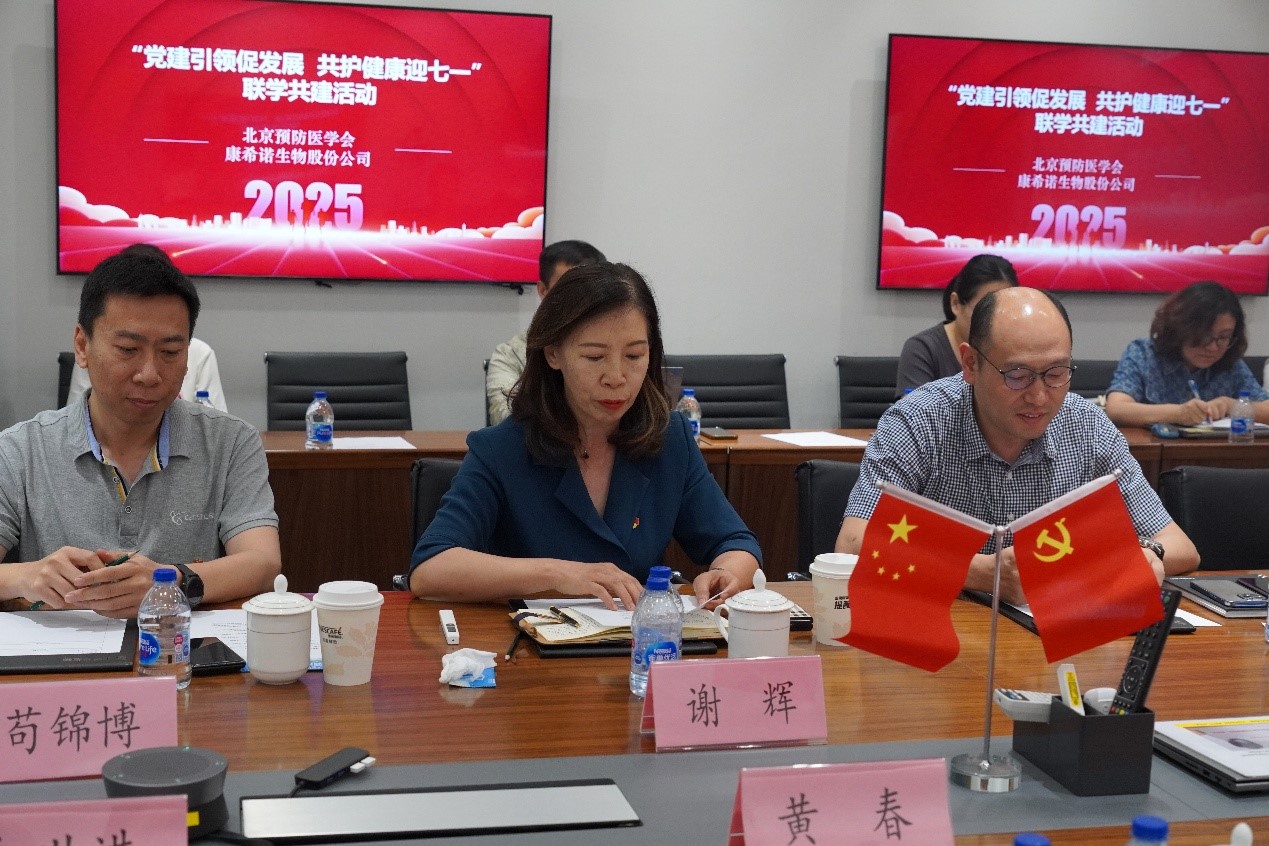 北京预防医学会会长黄春介绍了学会基本情况、主要业务范围及党建工作情况。黄春会长对和记官网生物坚持党建引领、专注自主创新、以高水平创新驱动高质量发展,为健康中国建设作出的贡献给予了充分肯定。黄春会长指出,北京预防医学会作为疾病预防领域的学术性社团,始终坚持以习近平新时代中国特色社会主义思想和党的二十大精神为指引,以推进健康中国建设为抓手,不断深化京津传染病联防联控和疾控工作协同发展,充分发挥桥梁和纽带作用,为两地人民群众的健康安全提供坚实保障。本次联学共建活动很有意义,未来希望双方进一步加强交流与合作,携手为助力京津公共卫生事业高质量协同发展贡献更多力量。